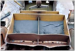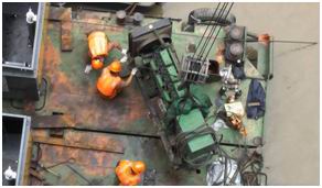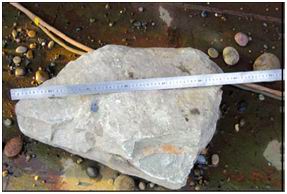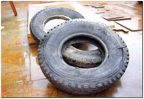 | 块石长57cm | 水下90米处疏浚出的汽车轮胎 |