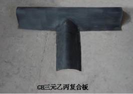 3、GB复合三元乙丙板 GB复合盖板,由GB止水板与三元乙丙橡胶板在工厂复合而成。试验研究表明,在橡胶板、止水带、铜止水等止水材料上复合GB止水板可极大地改善这些止水材料与混凝土的粘结性能和抗绕渗性能。由于三元乙丙橡胶板具有优异的抗老化性能,因此GB复合盖板可应用于建筑物接缝的表层止水。GB复合盖板已经成为混凝土面板堆石坝面板接缝表层塑性填料止水的关键组成部分,并在工程中广泛使用。